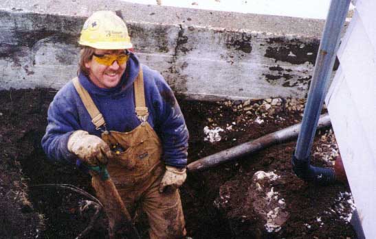in shoveling the soil back into the trench, Rick Smith and Linda Nenn