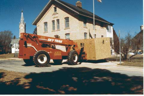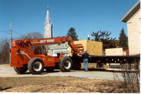 SkyTrak loader. AZCO Inc. donated their crane service. They are
